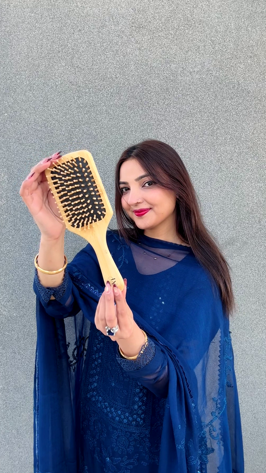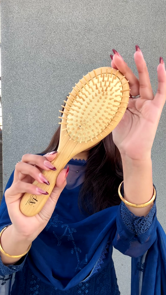 Original Bamboo Wooden Oval Paddle Brush